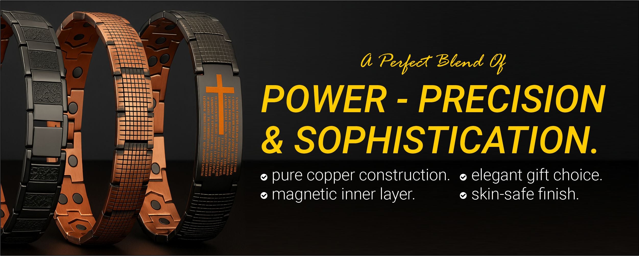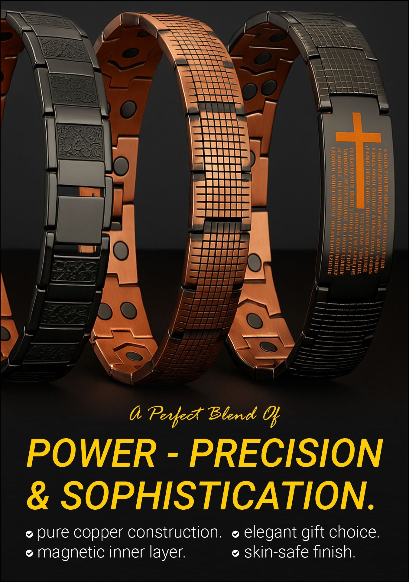 Stylish Black & Copper Magnetic Bracelet